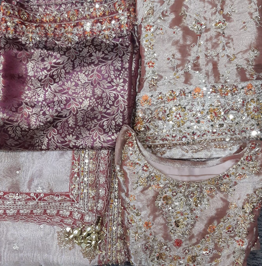 Embroidered Organza Neck Patch With 3D Flowers & Hand Embellishment